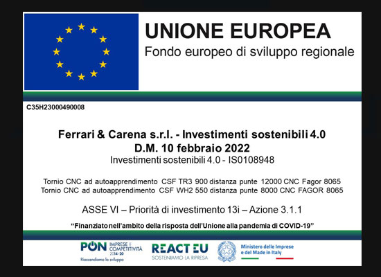 La FERRARI & CARENA venne fondata nel maggio del 1950 da Giuseppe Ferrari e Antonio Carena per soddisfare le richieste delle industrie torines. Per chi necessita di particolari meccanici di grandi dimensioni, quali ricambi per macchine utensili, presse o attrezzature, spesso difficilmente reperibili in commercio.